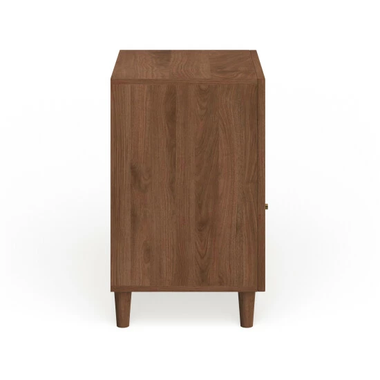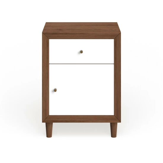 Complete your bedroom decor with the mid-century modern Trollhattan nightstand. The walnut-finished frame encases a white drawer and cabinet that offer concealed storage. Complement this piece with a silver or gold lamp for a touch of shimmer.