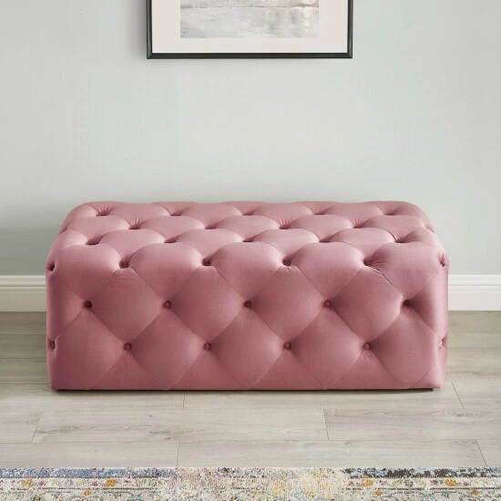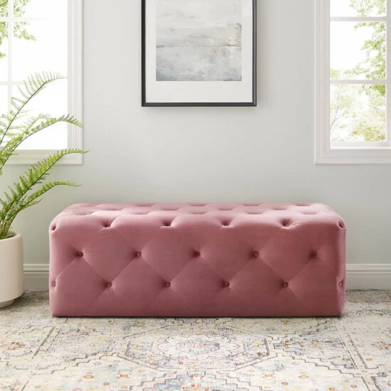 Present beautiful seating for your home with this velvet entryway bench. Stain-resistant velvet fabric and thick foam padding provide for soft, comfortable seating. Tufted buttons add a style that makes this bench perfect for the foyer or entrance. The 48-inch bench seats multiple people at up 500 pounds.