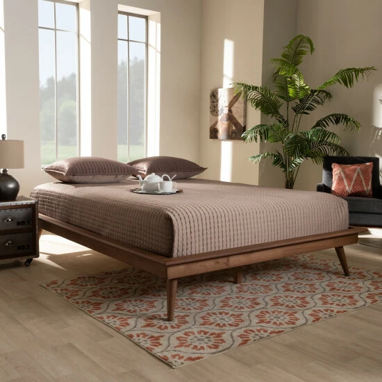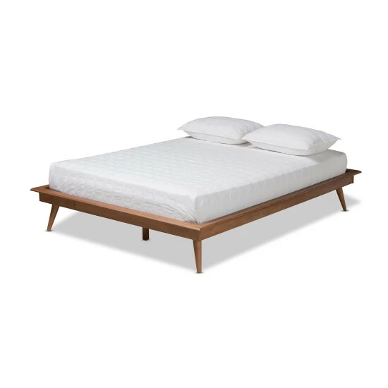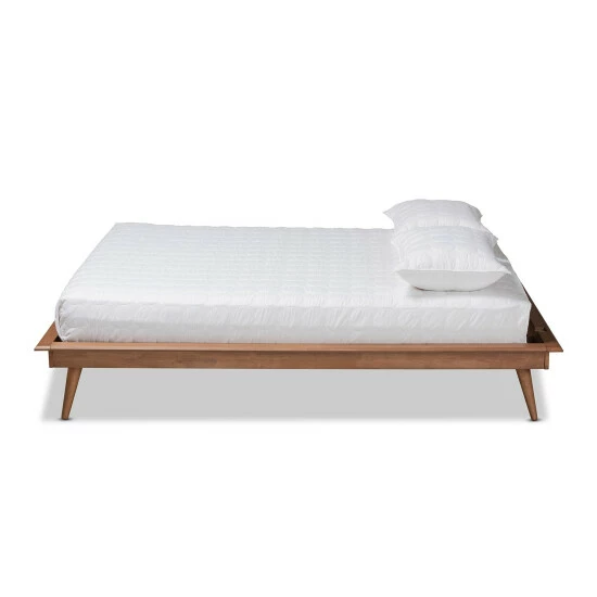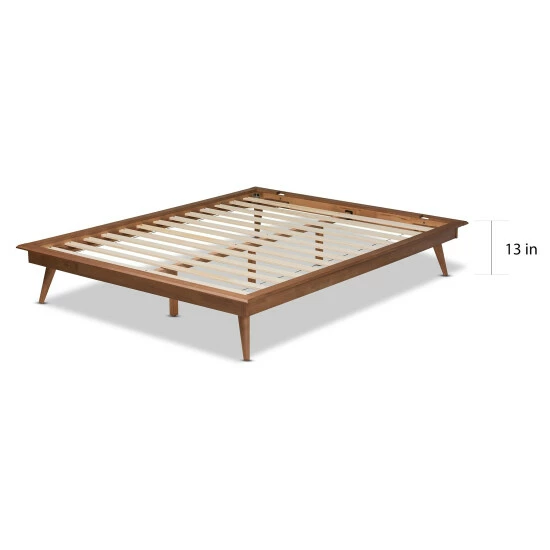 Bask in the beauty of simplicity with this mid-century modern bed frame. Made from durable rubberwood with supportive slats, this bed is sure to last a lifetime. The clean lines, low profile, and angled legs are tastefully minimal, and the platform design makes the bed ready to use without a foundation.