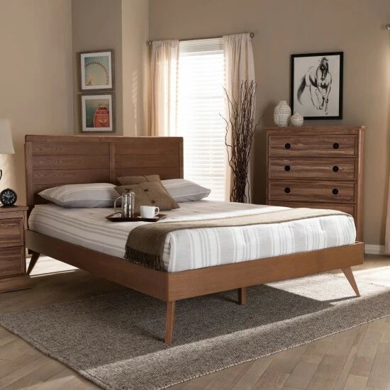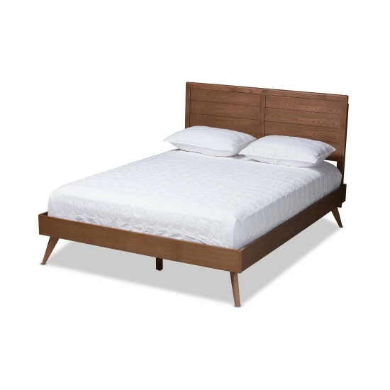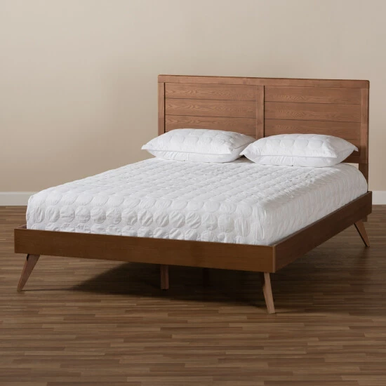 Reinvent your bedroom or guest room with this platform bed. Made from sturdy solid rubberwood for durability, this bed combines a smooth natural walnut finish with splayed legs to create a classic mid-century modern look.