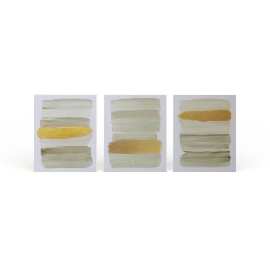 Invite contemporary shine into your space with this calming canvas set from Carson Carrington. Each white canvas is stretched over a sturdy MDF board and comes ready to hang for easy installation. Broad grey paint strokes are paired with gold foil for a simple yet glam look.