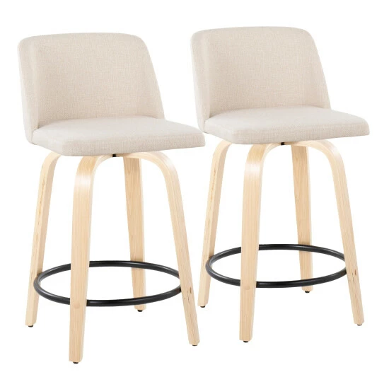 - Colors: Light Green, Cream Noise, or Grey Noise Fabric; Camel, Cream, or Grey Faux Leather + Natural Wood + Black or Chrome Footrest