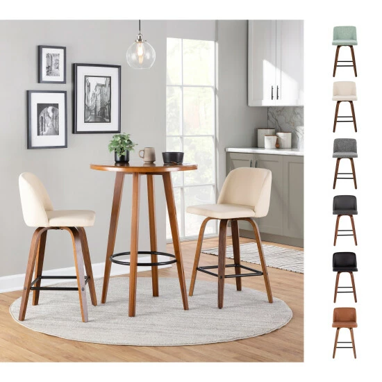 Comfort, modern simplicity, and classic lines define the appealing look of the Vallberga Counter Stool. A padded upholstered seat sits on a fixed-height Mid-Century inspired tapered leg base with a round footrest. Available in various colors, choose the one that suits your space best!