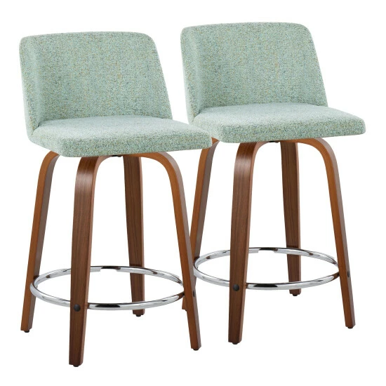 - Colors: Light Green, Cream Noise, Grey Noise Fabric; Camel, Cream, or Grey Faux Leather + Walnut Wood + Chrome or Black Footrest