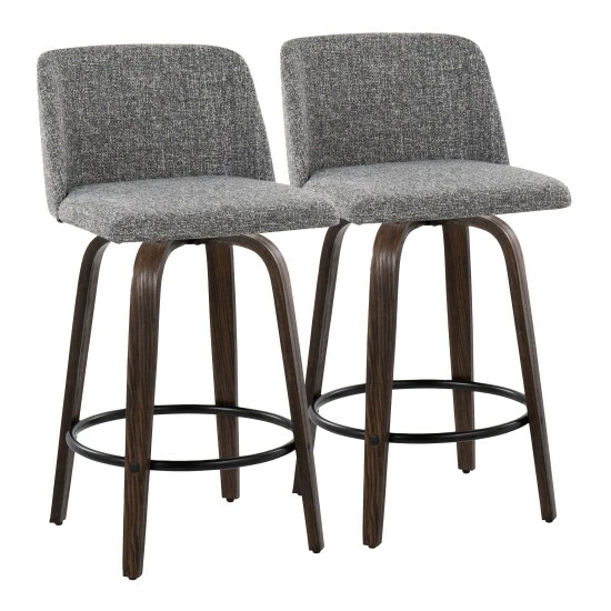Comfort, modern simplicity, and classic lines define the appealing look of the Vallberga Counter Stool. A padded upholstered seat sits on a fixed-height Mid-Century inspired tapered leg base with a round footrest. Choose among various upholstery options.
