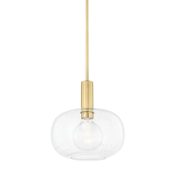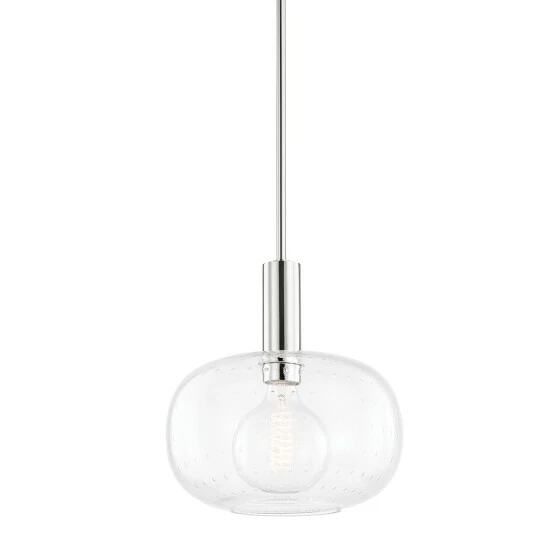 Illuminate your home with this 1-light pendant. This pendant features a steel frame with a clear seeded finish. The glass shade to go along with this sleek finish bring plenty of elegant and sophisticated lighting to your home.