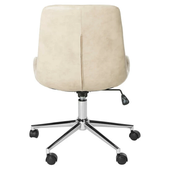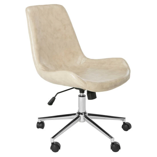 Give your office a touch of character and charm with this elegant office chair. Featuring a one-piece molded seat upholstered in beige faux leather, the chair adds a touch of retro flair to any space, while the 360-degree swivel, adjustable height, and caster wheels ensure easy movement and endless versatility.