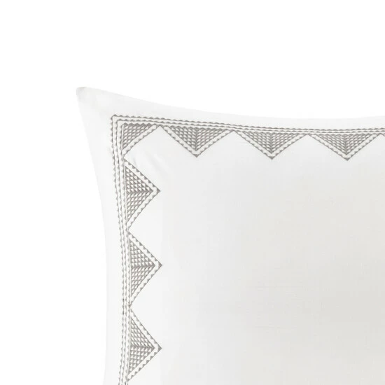 Bring an extra touch of elegance to your bedroom decor with this 26-inch Euro sham. Crafted from 100-percent cotton, the Euro sham features a geometric design, embroidered along the edge for an extra pop of style. A topical antimicrobial treatment prevents bacteria buildup, keeping the sham fresher for longer, adding convenience to this stylish pillow sham.
