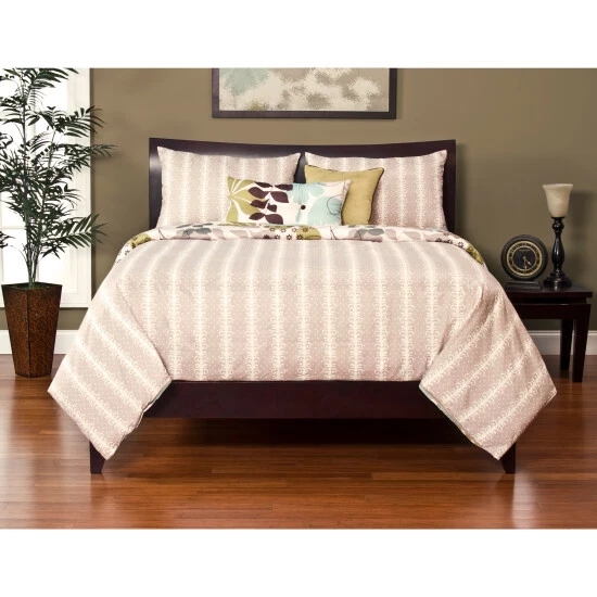 Enliven your bedroom with this versatile spring-inspired set. Made from 100-percent polyester, the durable duvet cover features a contemporary botanical print and can be reversed to reveal a beige stripe pattern. The shams and decorative pillows also reverse to create ultimate cohesion and customization.
