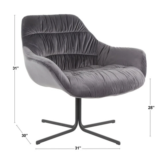The Carson Carrington Wayne Swivel Lounge Chair will bring life to your living room or study with a comfortable style that will look great with any modern decor. This plush lounge chair features a wide backrest with flared armrests and padded foam for complete comfort. With a sleek velvet upholstery, stylish tufting, and a black metal base, this chair is designed with a full 360-degree swivel. Available in a variety of colors, choose the one that fits your space the best.