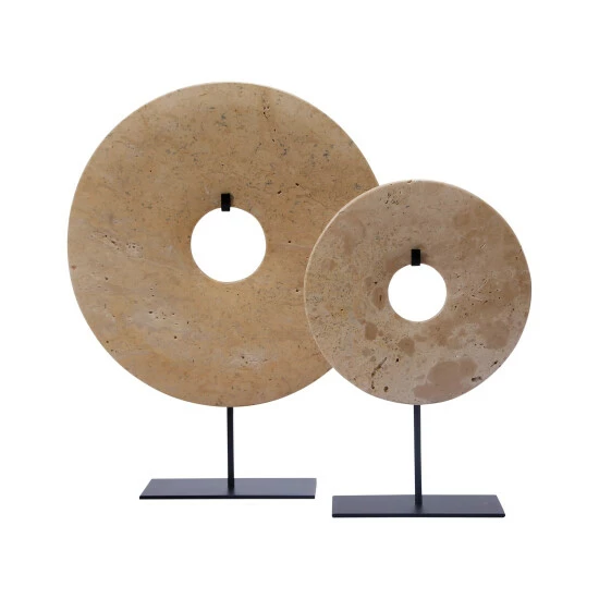 Decorate your home with this disk statue. This statue is made with stone and has an antique finish. This statue is handmade and and weather resistant. Set tranquility as the centerpiece to your decor with this stylish statue.